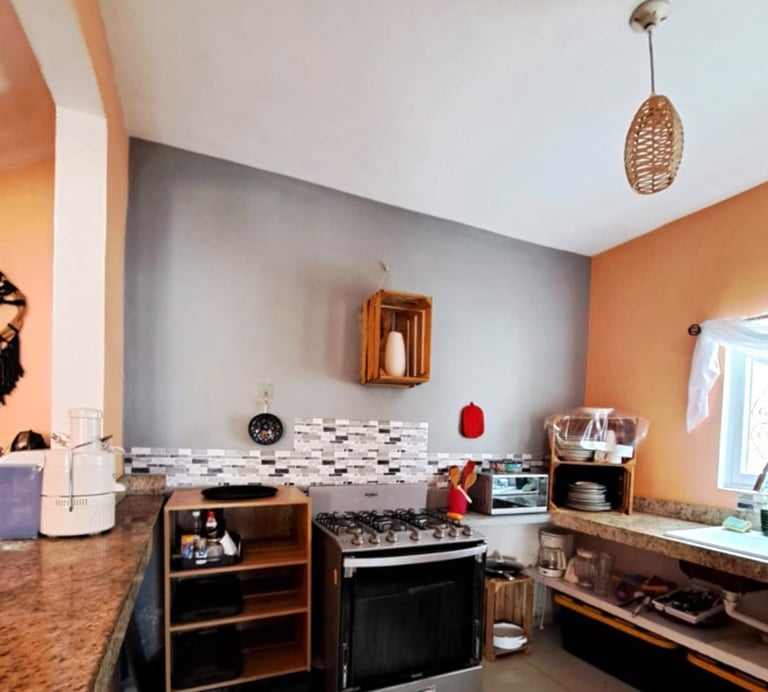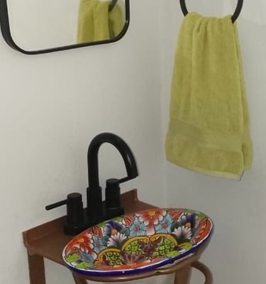 Our 2 bedroom 1.5 bathroom rental property boasts both traditional aesthetics and modern amenities including fully equipped kitchen, air conditioned bedroom, west facing terrace, private back patio, high speed fiberoptic wi-fi, smart Roku TV...all 5 blocks from the vast beach of Bucerias Centro.